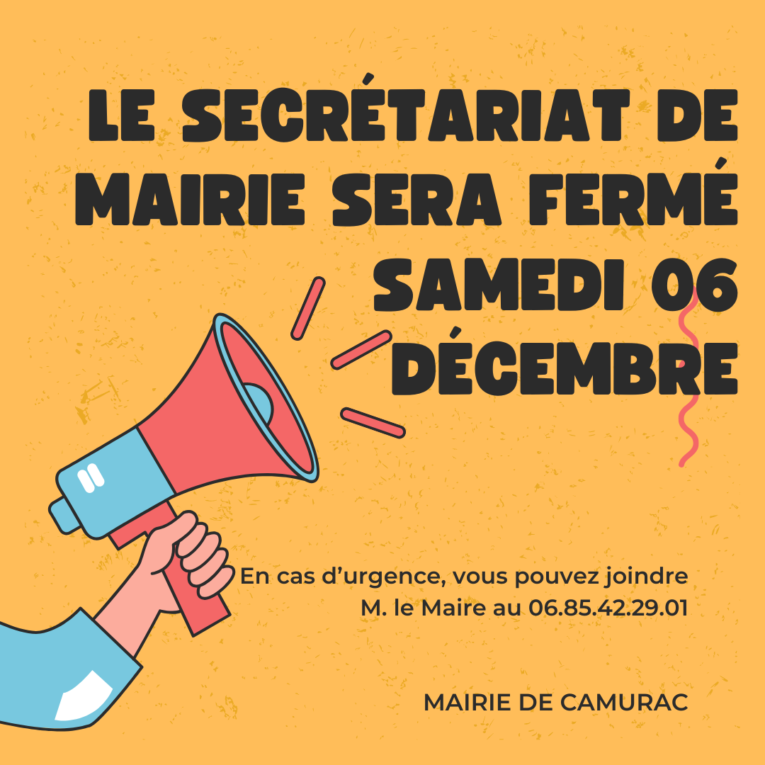 Filtrer par :TousActualitéAffichageInformationsManifestationNon classéVie communale Rechercher Rechercher Informations8 décembre 2025Église et crèche de Camurac Informations4 décembre 2025Secrétariat de Mairie Fermé le Samedi 06 décembre Actualité1 décembre 2025Un géant au détour d’une rue Informations21 novembre 2025Panne service déneigement Actualité13 novembre 2025Cette année à Camurac, on recense!!Du 15 janvier au 14 février 2026 Informations3 novembre 2025Grippe aviaire et porcine 1 2 3 … 14 >