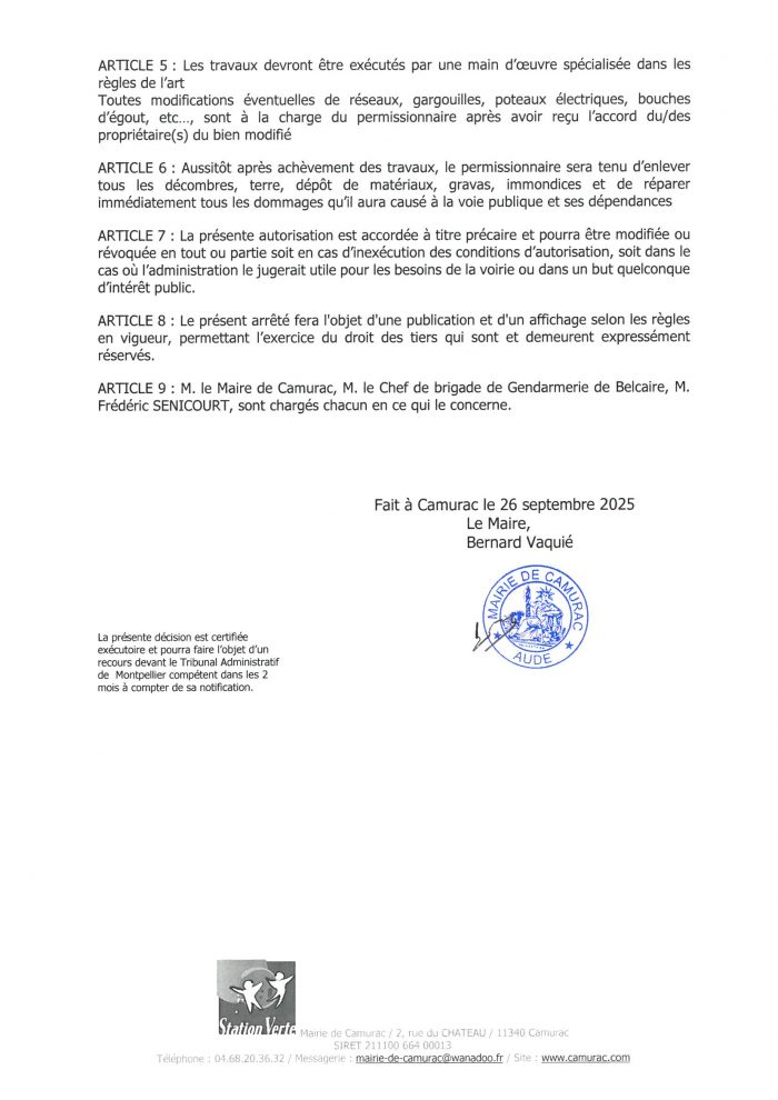 Arrêté circulation et stationnement COUMELONGUE 29/09 au 07/11